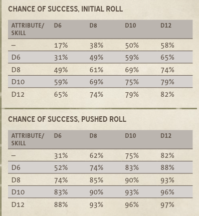 Avoir un avantage signifie que le seuil de réussite descend sur un unique dé de 1 point.